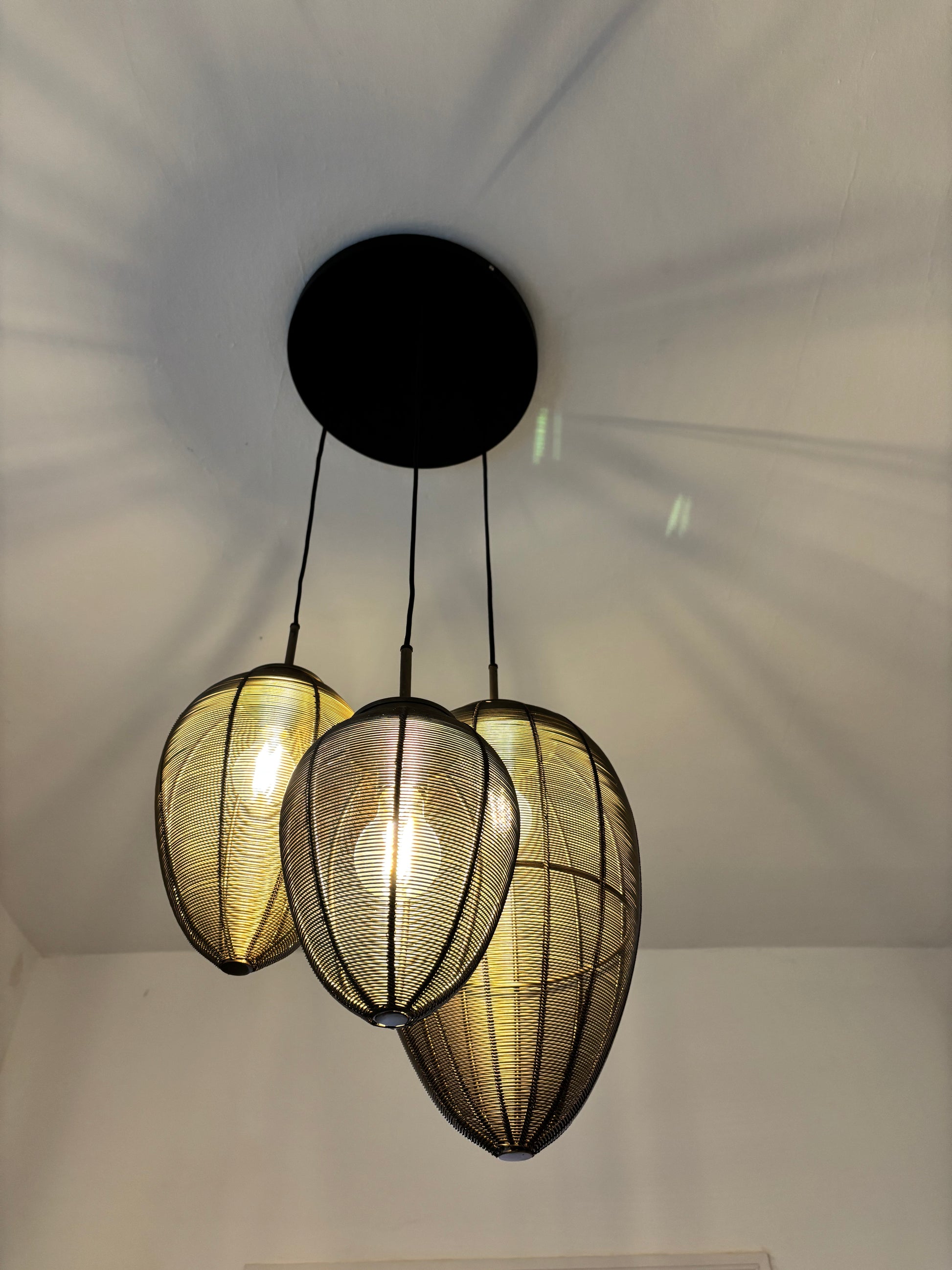 Ob im Wohn- oder Schlafzimmer, über dem Esstisch oder im Flur – die drei Schirme in ovaler Form tauchen den Raum in sanft diffuses Licht und schaffen eine einladende Atmosphäre. Mit ihrem harmonischen Zusammenspiel von Robustheit und Eleganz wird „Aurelia“ zum Highlight jeder Einrichtung.