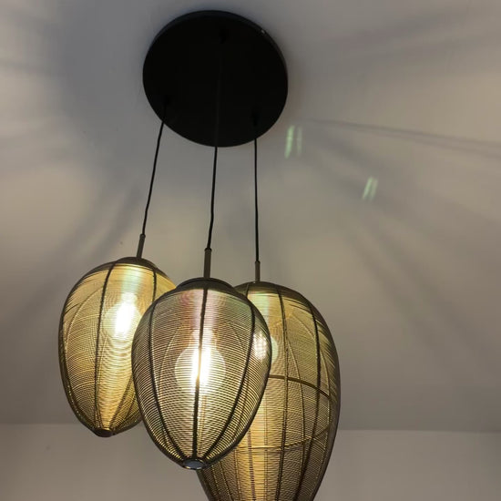 Eleganz im Dreierpack: Das Hängelampenset „Aurelia“ setzt mit seinen drei filigran geflochtenen Lampenschirmen aus Metall stilvolle Akzente. Die antikbronze Oberfläche sorgt für warmen Vintage-Charme, während das robuste Metalldrahtgeflecht dem Design eine moderne Leichtigkeit verleiht.