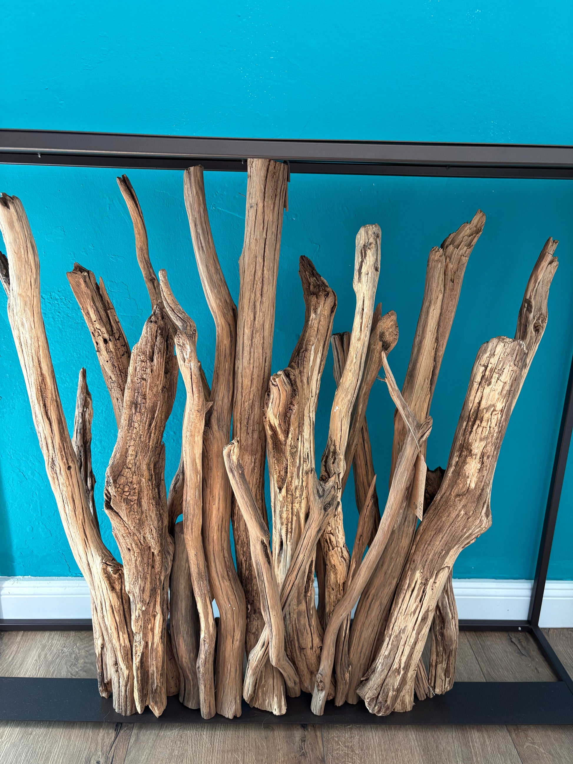 Material: Metallrahmen mit dekorativen Holzstämmen aus Eiche