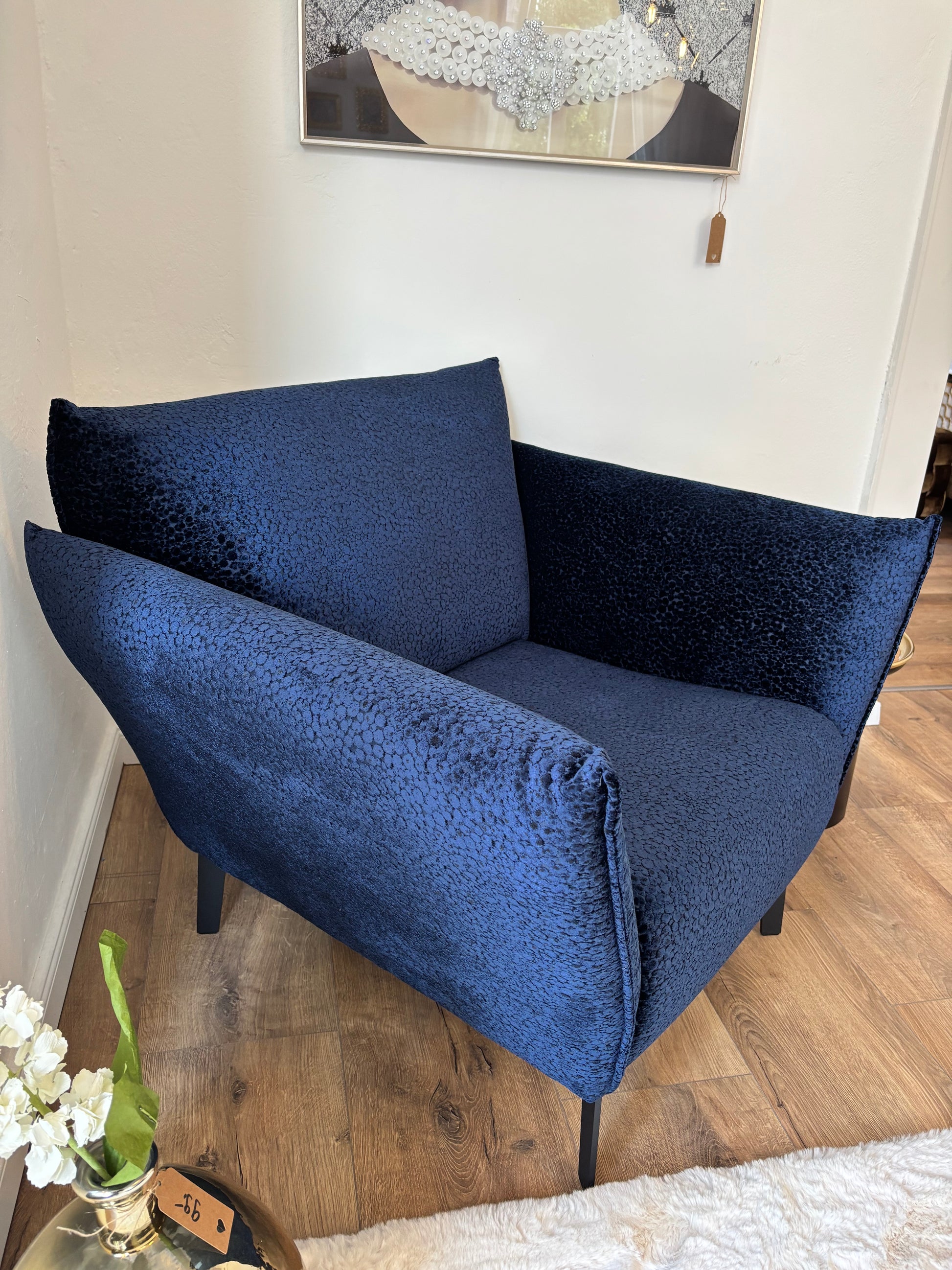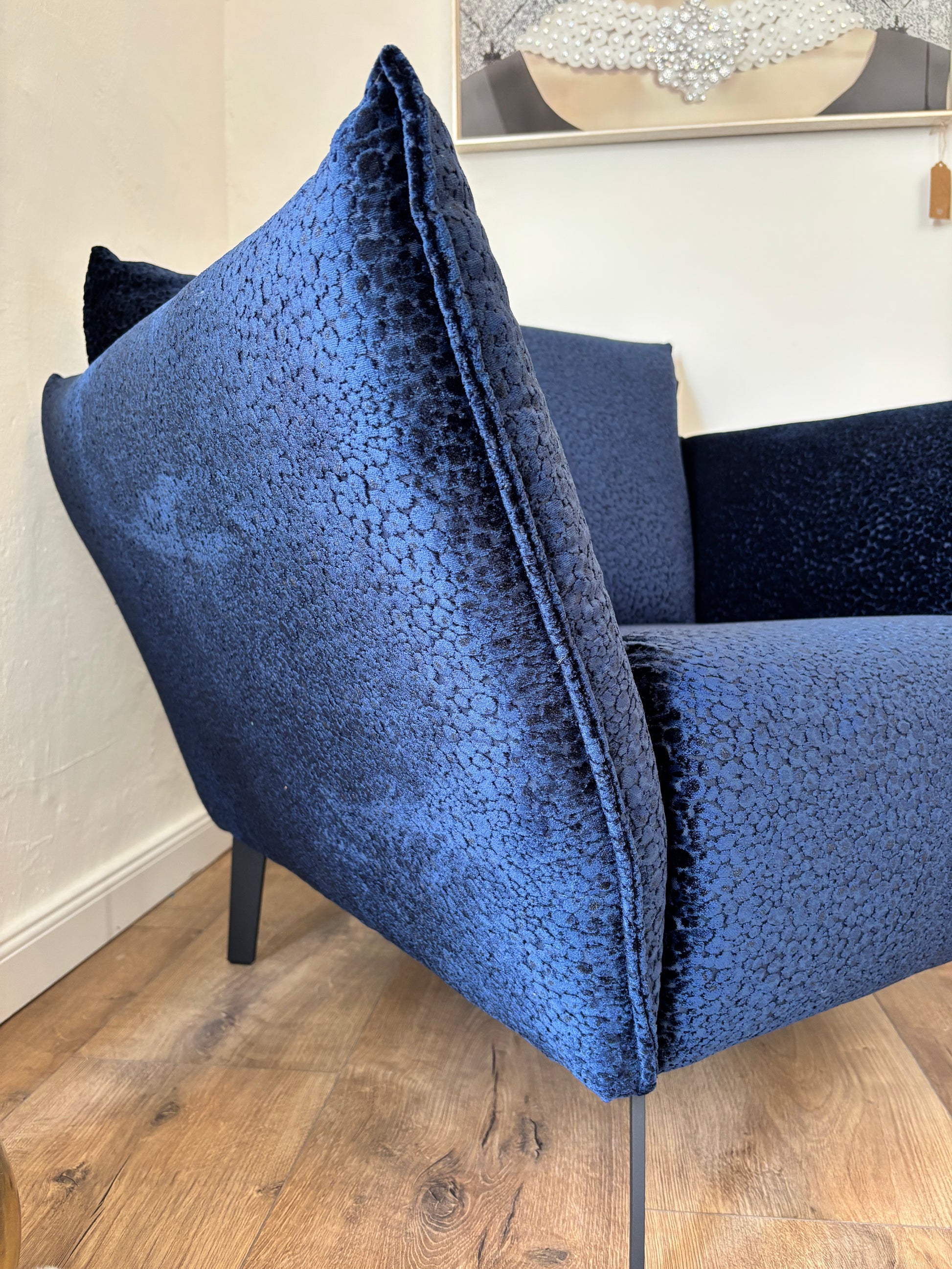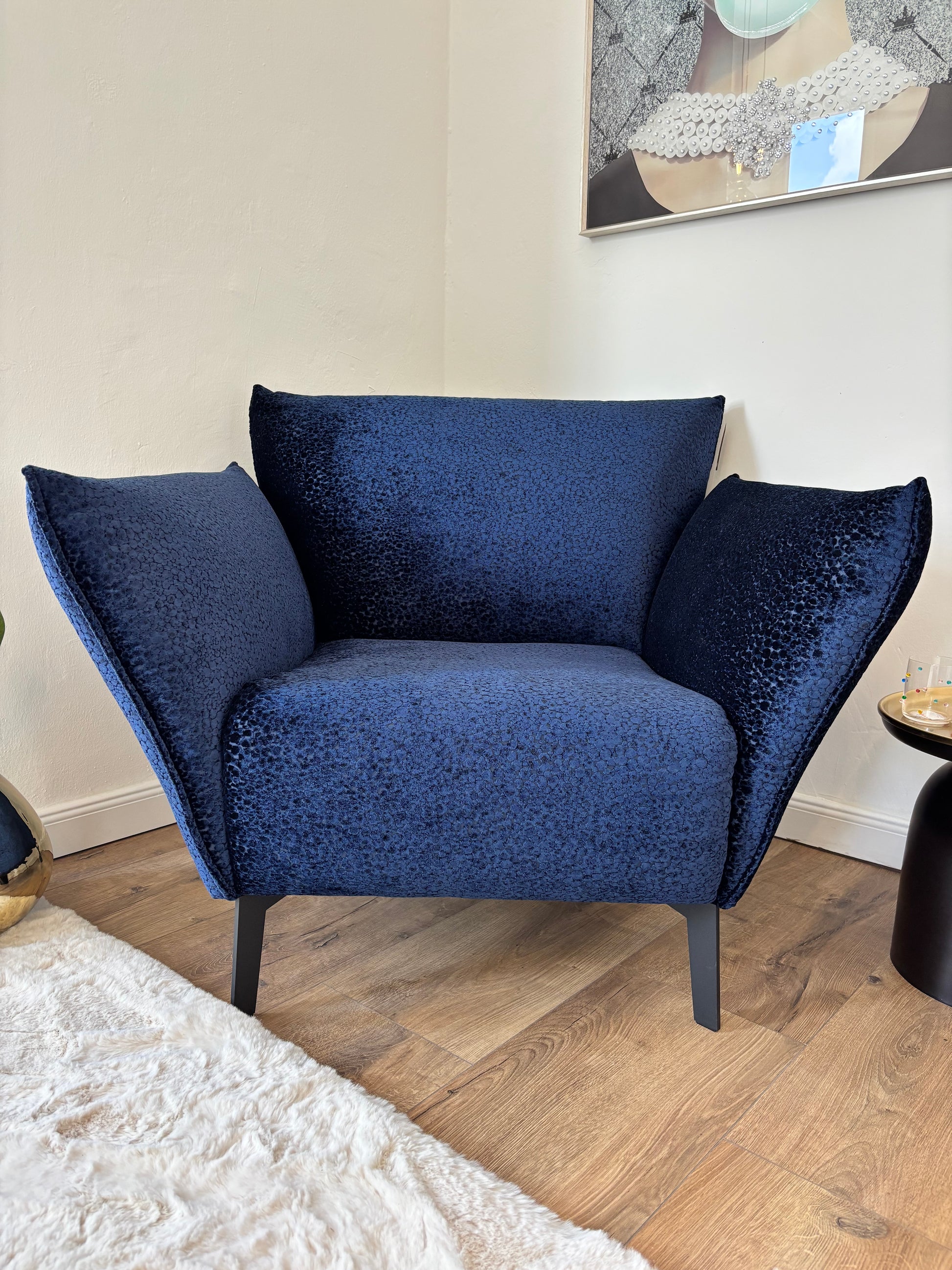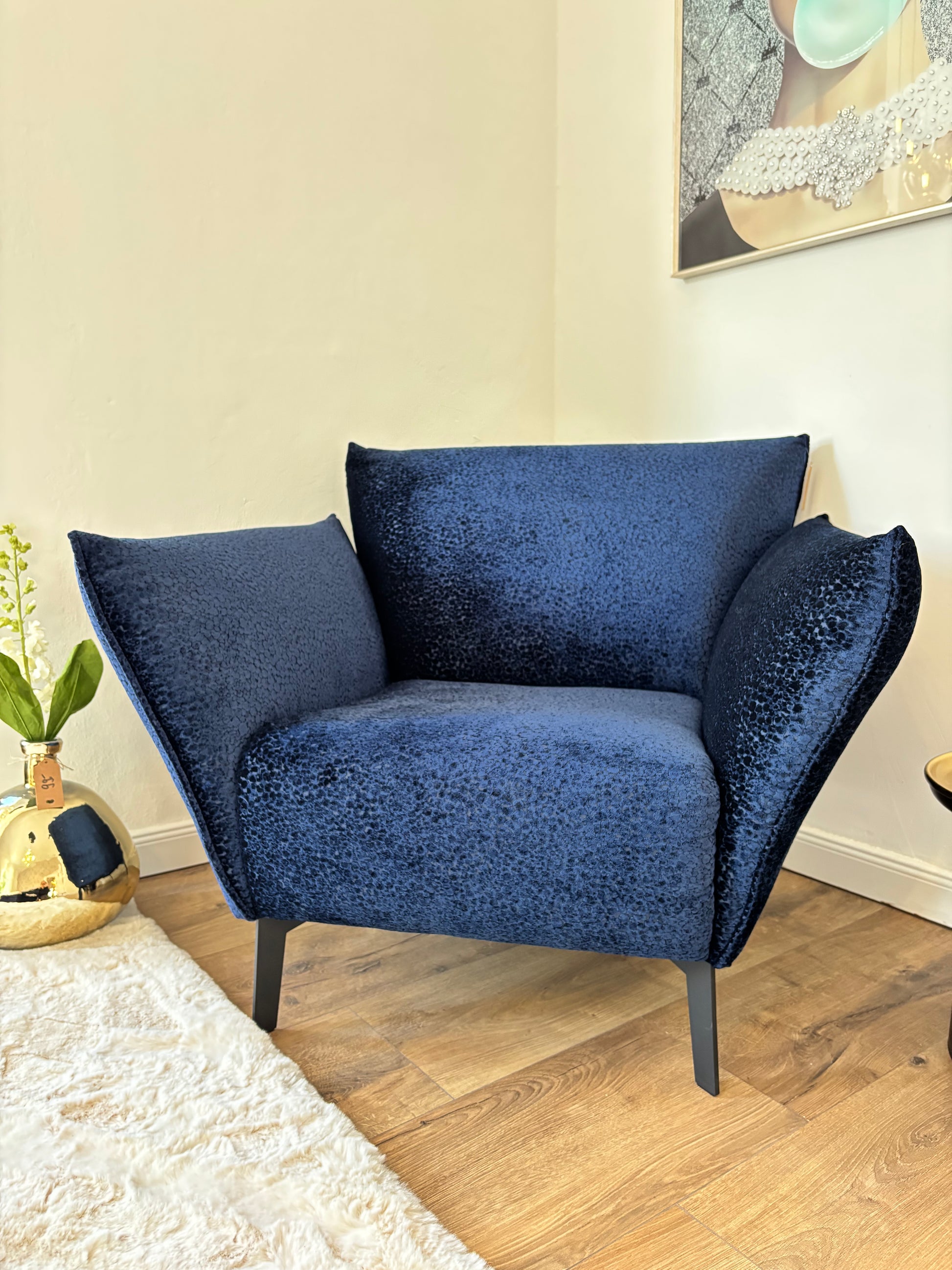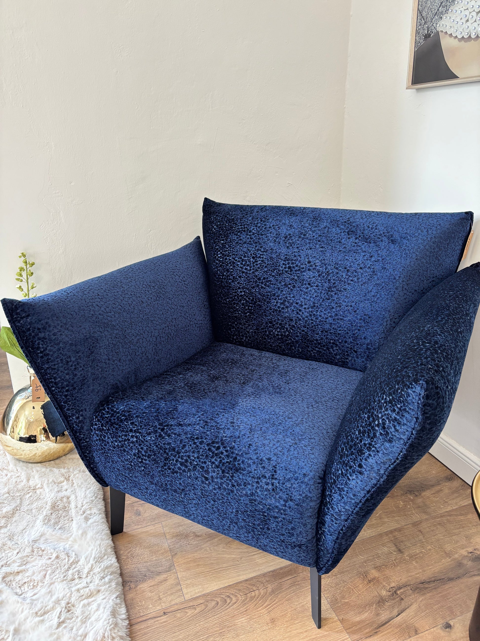 Unser Sessel „Royal Leo“ vereint extravagantes Design mit hochwertiger Verarbeitung. Der samtige Stoffbezug in Leo-Optik macht ihn zum ausdrucksstarken Eyecatcher, während die klare Form und der schwarze Metallfuß moderne Eleganz ausstrahlen. Mit einer Sitzhöhe von 43 cm bietet er optimalen Komfort – ob im Wohnzimmer, Ankleidebereich oder als stilvolles Einzelstück im Flur.