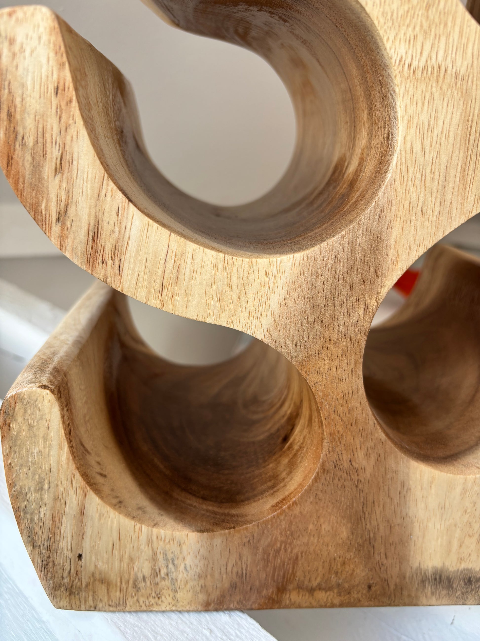 Das naturbelassene Holz verleiht jedem Stück seinen individuellen Charakter – kleine Abweichungen in Farbe und Maserung machen jeden Halter zu einem echten Unikat. Ob auf Sideboards, in der Küche oder im Wohnzimmer: „Vino“ bringt rustikale Eleganz und modernes Wohngefühl perfekt zusammen.